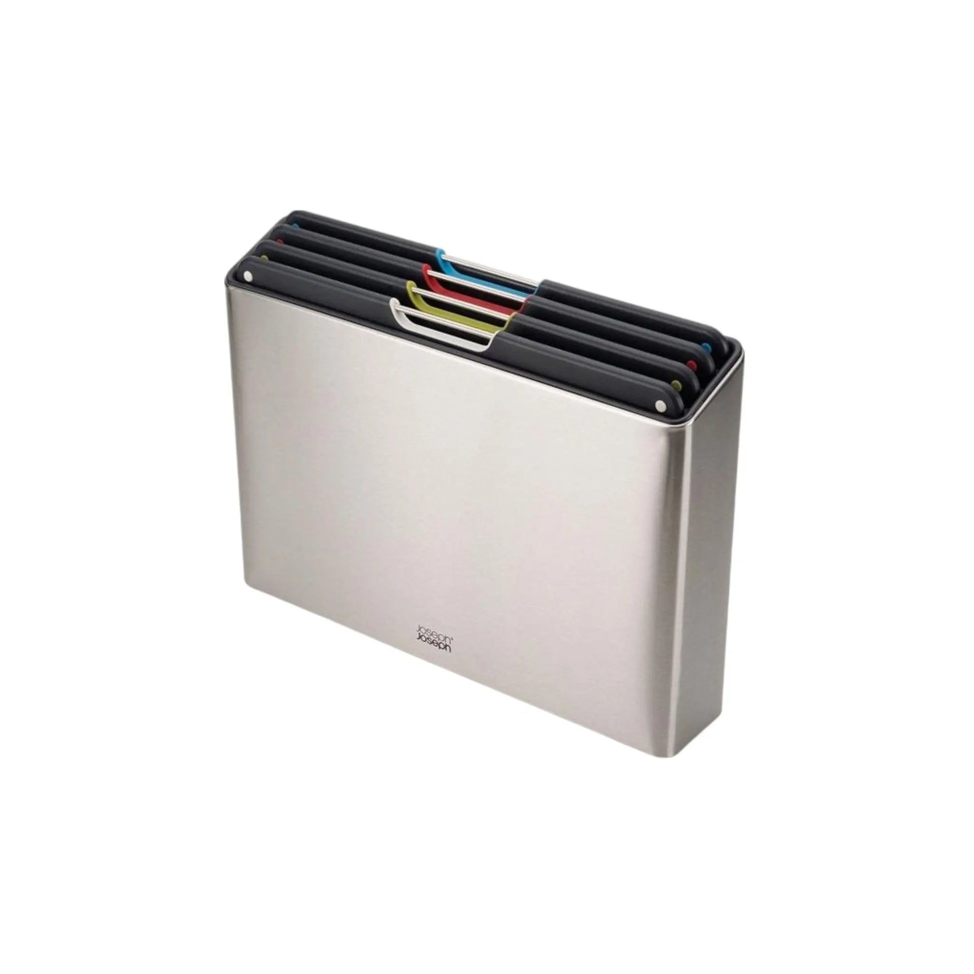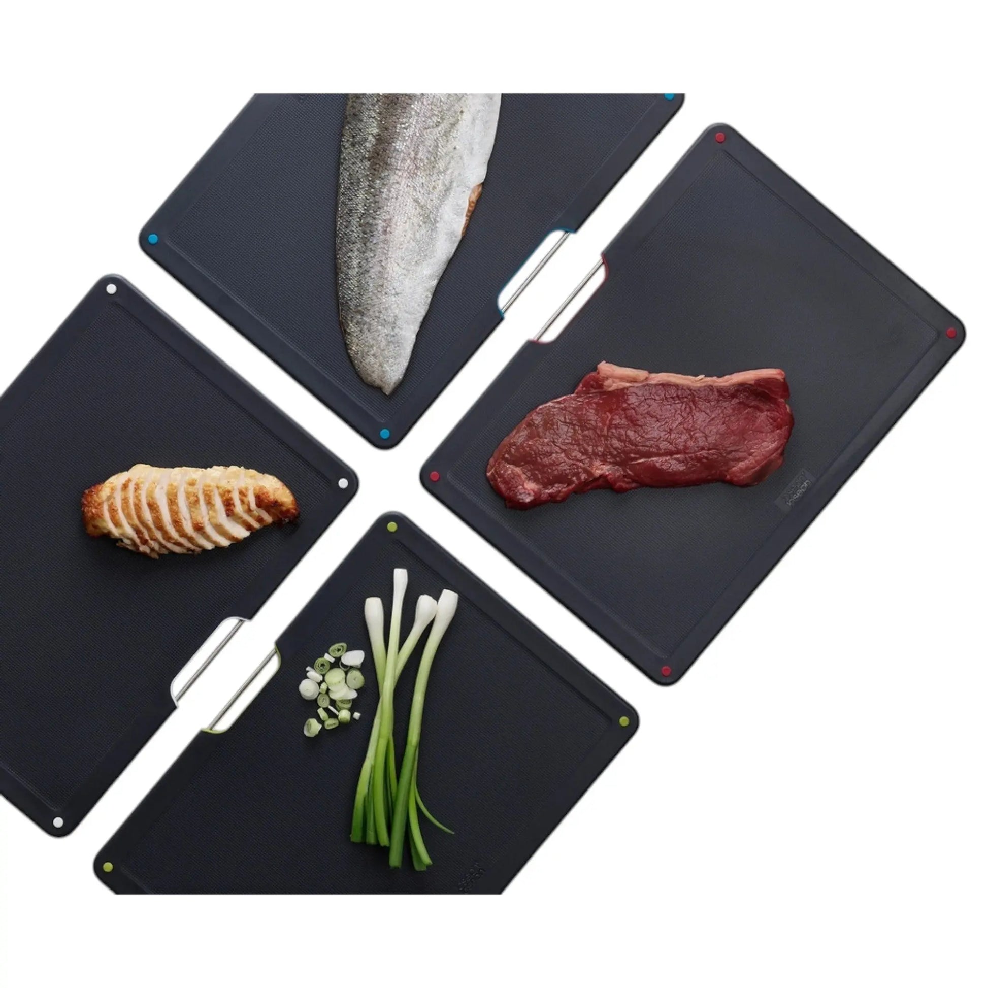 Joseph Joseph Schneidebrett-Set „Folio“ – 4-teilig, mit Halterung, Edelstahl